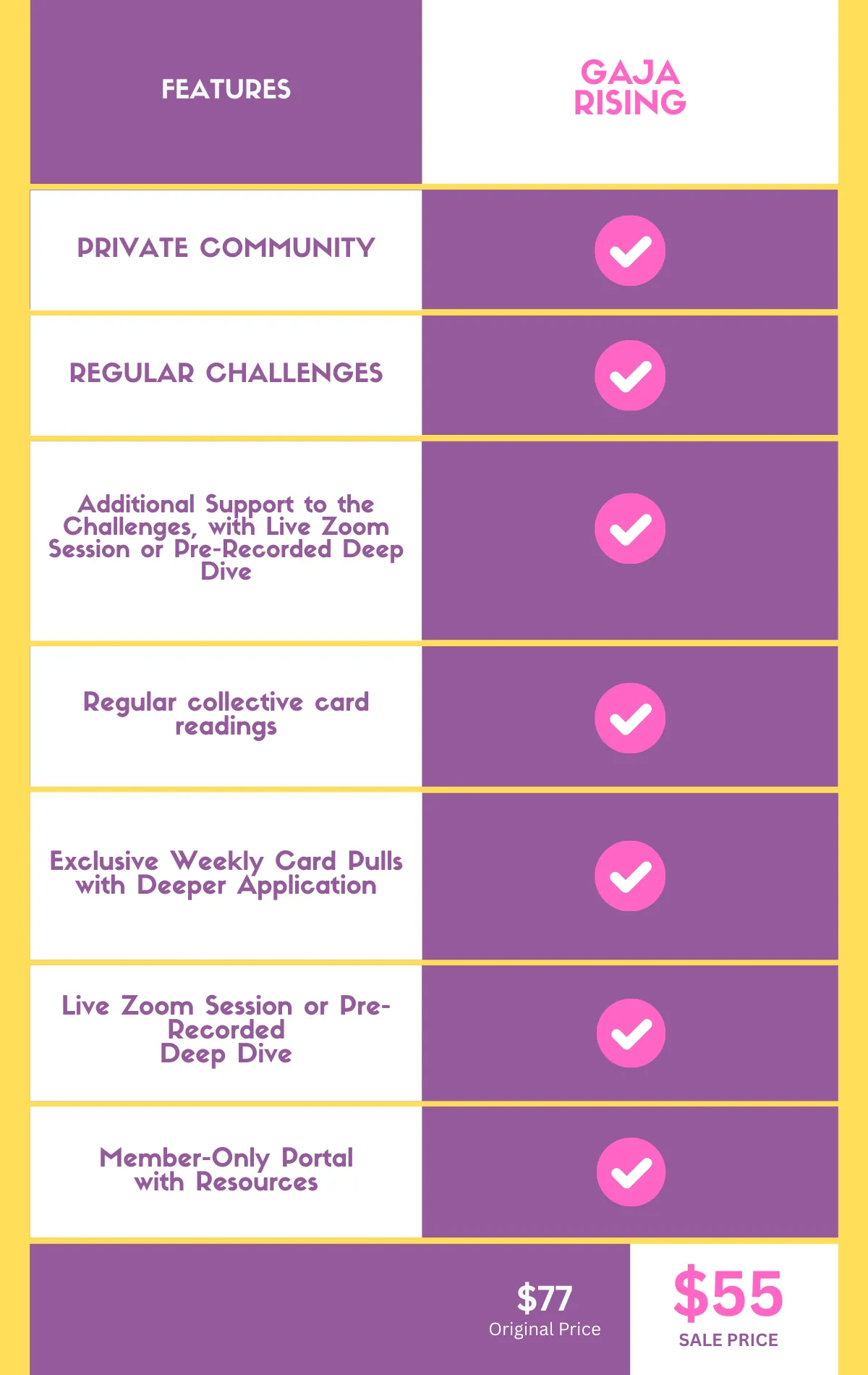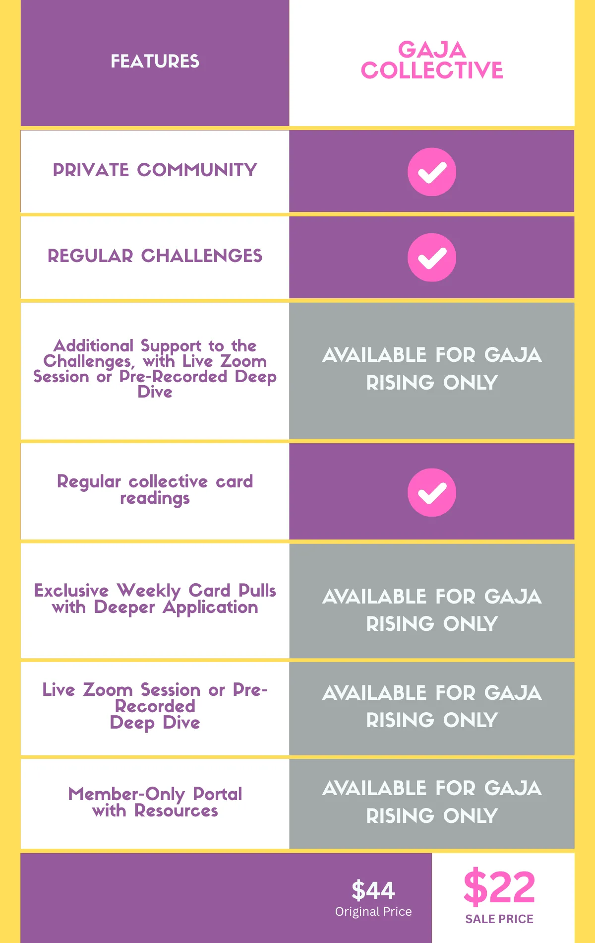 Do I crave deeper insights, personalized growth, and high-level support? → GAJA Rising is your next step! GAJA Rising is for those ready to go deeper—with exclusive weekly card pulls, extra challenge support, monthly live (or pre-recorded) deep dives, and a private members-only portal full of transformational resources.